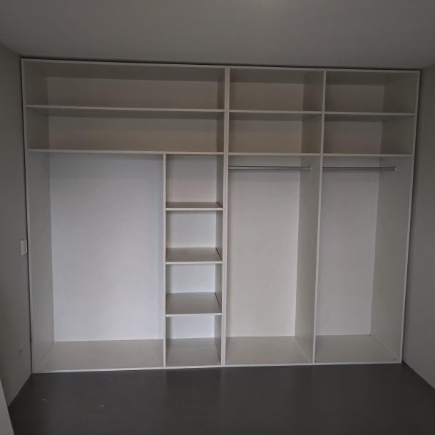 In overleg met de opdrachtgever is besloten tot een grote kast achter schuifdeuren.